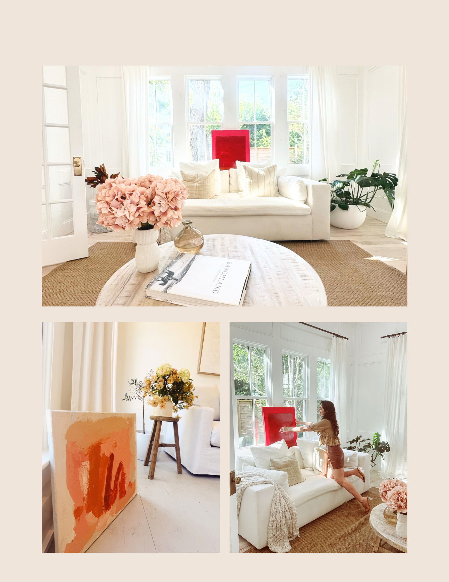 A dialogue between bold color and soft neutrals — contemporary paintings that invite warmth and quiet sophistication into every room.