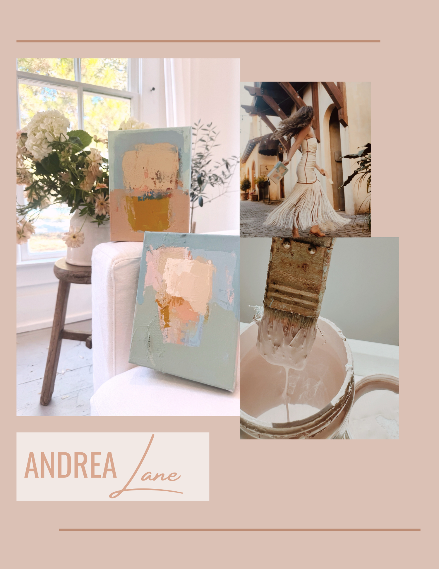 I create modern, atmospheric abstract art with organic texture and soulful color, inspired by sun-worn European warmth. Here you’ll find available work, a glimpse into my journey, and ways to connect whether you’re a collector, boutique, gallery, or designer. Welcome to my studio!